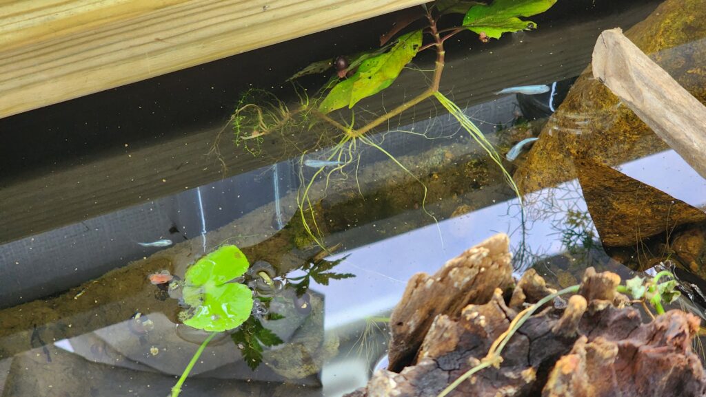 うねめの杜には、ビオトープがあります。その中にはメダカさんの青蝶と朱光菊という子たちがいますが、お家で見てあげれる方には、連れて帰っていただけますので、スタッフにお声掛けくださいね。