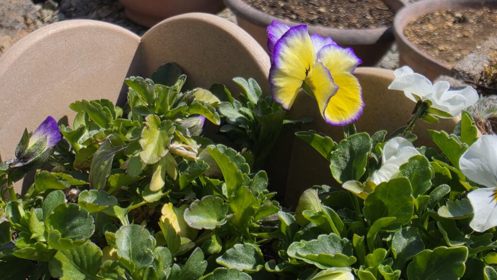 ご家族様からいただいた、虹色スミレが咲きました。キレイでかわいい。良いとこどりです。